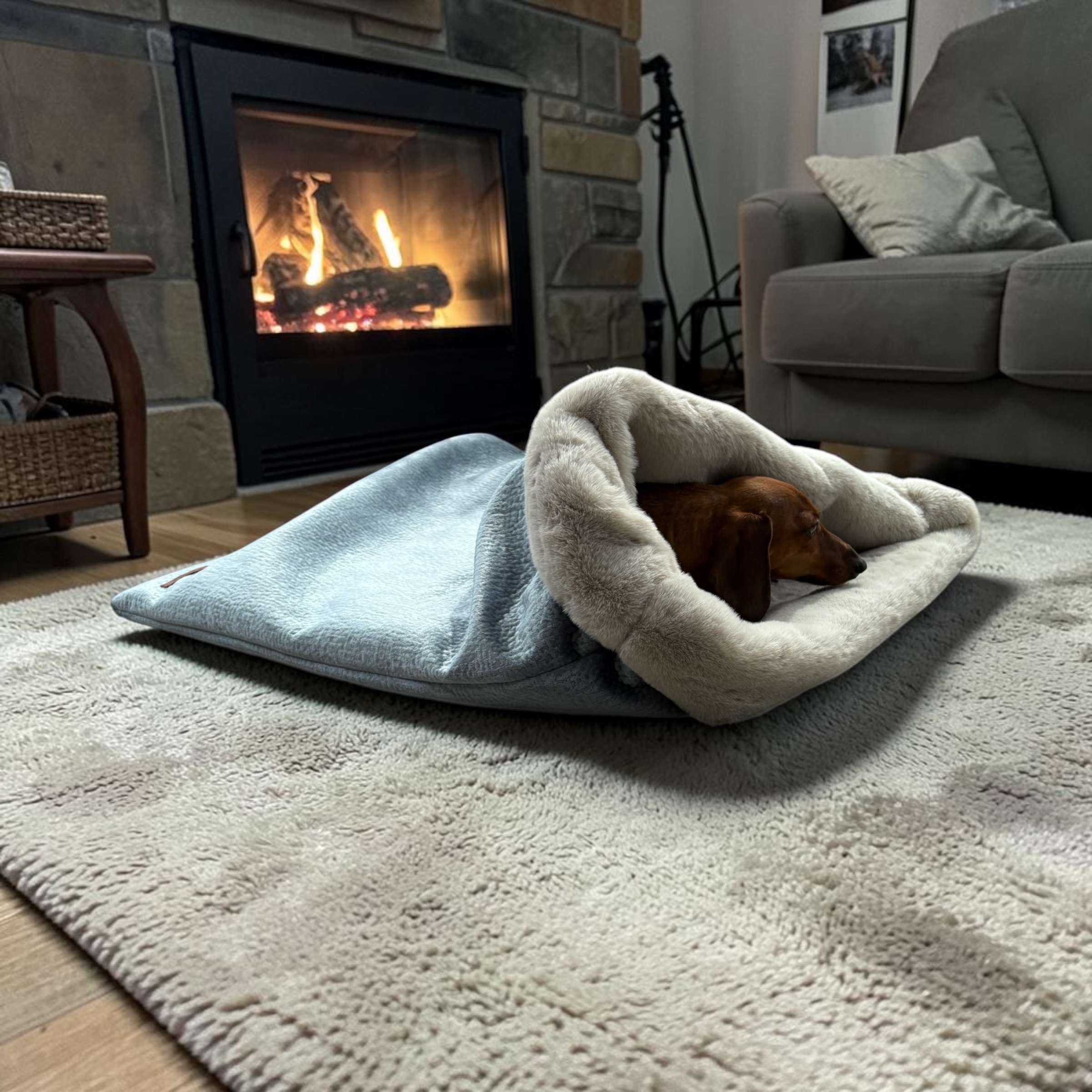 The sleeping bag offers a safe feeling for puppies or older dogs, for example. Ideal for in the crate, basket or on the couch, but also handy for travelling or taking to a restaurant or campsite.